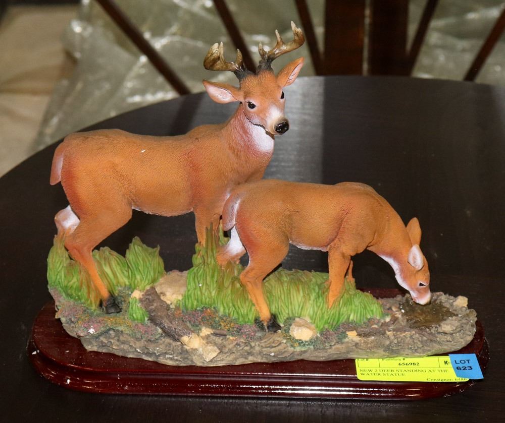 NEW 2 DEER STANDING AT THE WATER STATUE