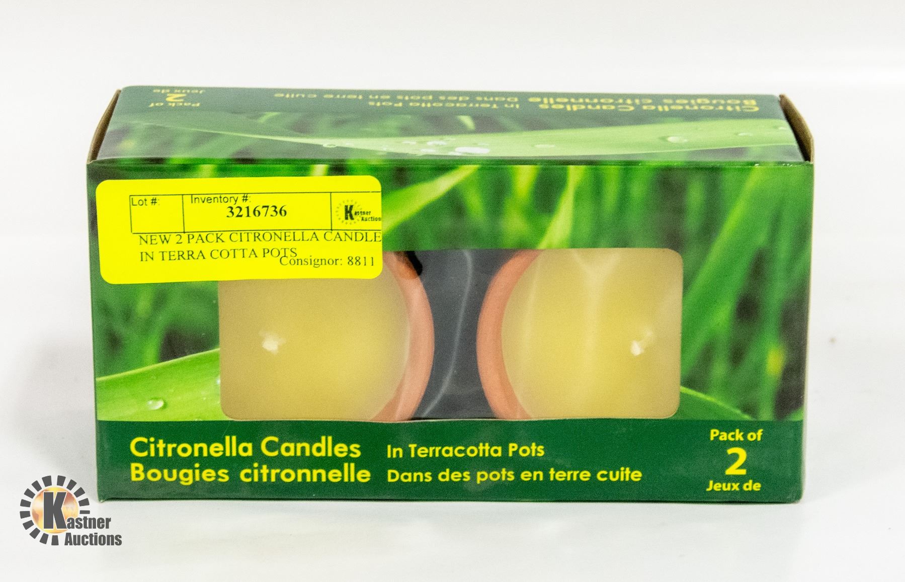 NEW 2 PACK CITRONELLA CANDLES IN TERRA COTTA POTS