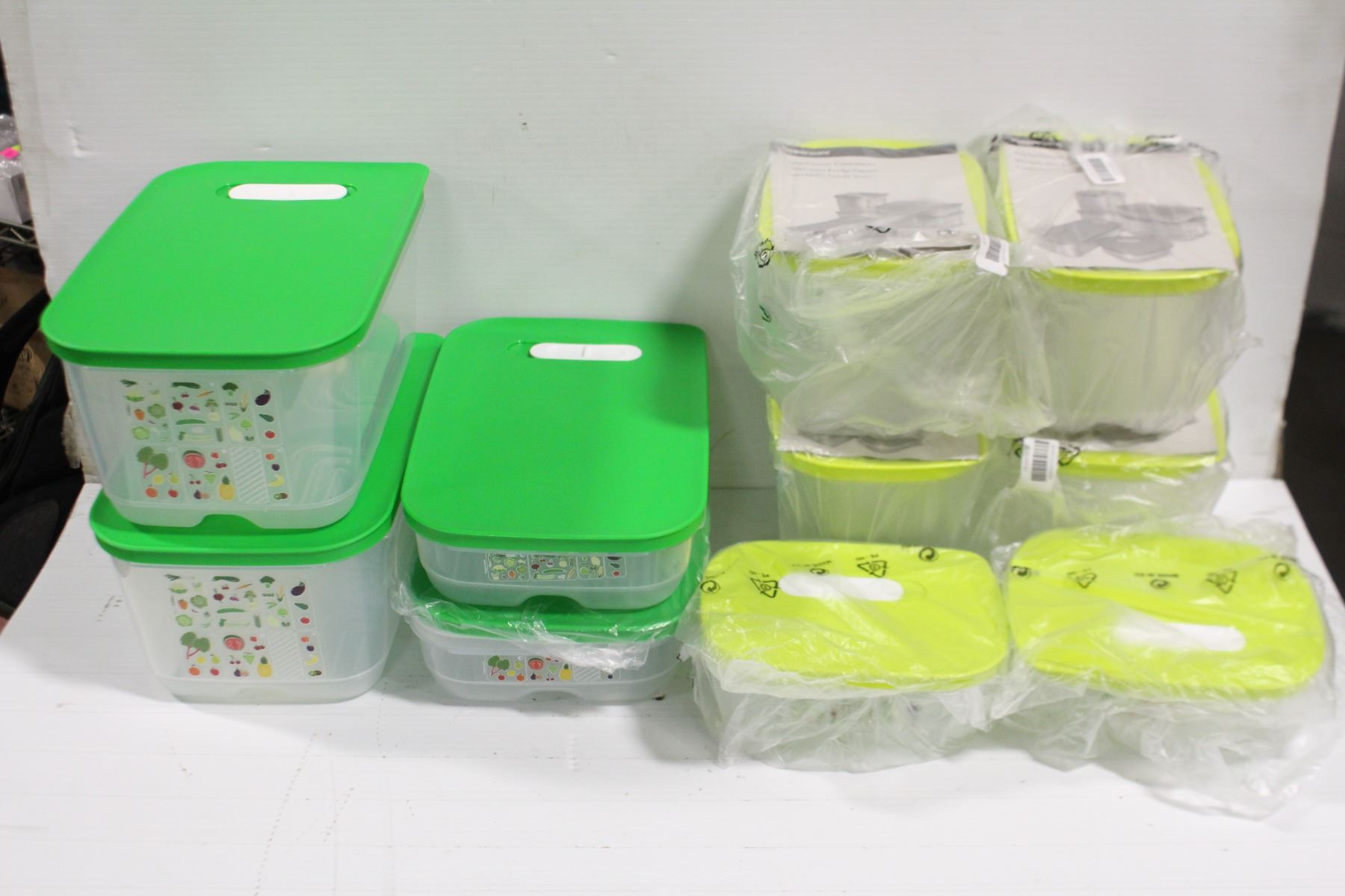 FOOD STORAGE. *$282.00 TOTAL ONLINE VALUE.* ALL LIDS INCLUDED. 10 CONTAINERS W/ LIDS. TWO 4.4L, TWO 1.8L SHALLOW, FOUR 1.8L DEEP, TWO 0.8L. ALL NEW IN PLASTIC/NEW IN BOX, NEVER USED. TAPERED EDGES & LIDS FOR QUALITY SEAL **ALL ITEMS MUST BE REMOVED BY 5PM MONDAY, MAY 8TH, 2023. ALL REMAINING ITEMS WILL BE SUBJECT TO A $6.00 PER DAY STORAGE CHARGE. ANY ITEMS REMAINING AFTER MONDAY, MAY 22ND, 2023 WILL BE CONSIDERED FORFEITED. NO REFUNDS WILL BE ISSUED FOR FORFEITED ITEMS.** TO SCHEDULE A PICK UP APPOINTMENT CLICK HERE