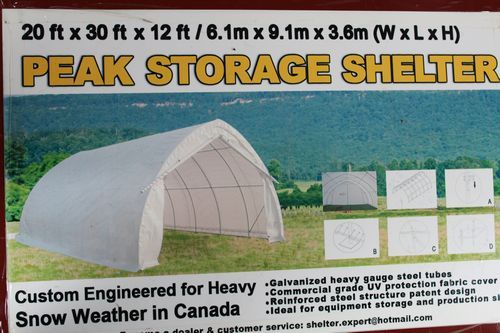 NEW 20' X 30' X12' PEAK STORAGE SHELTER
