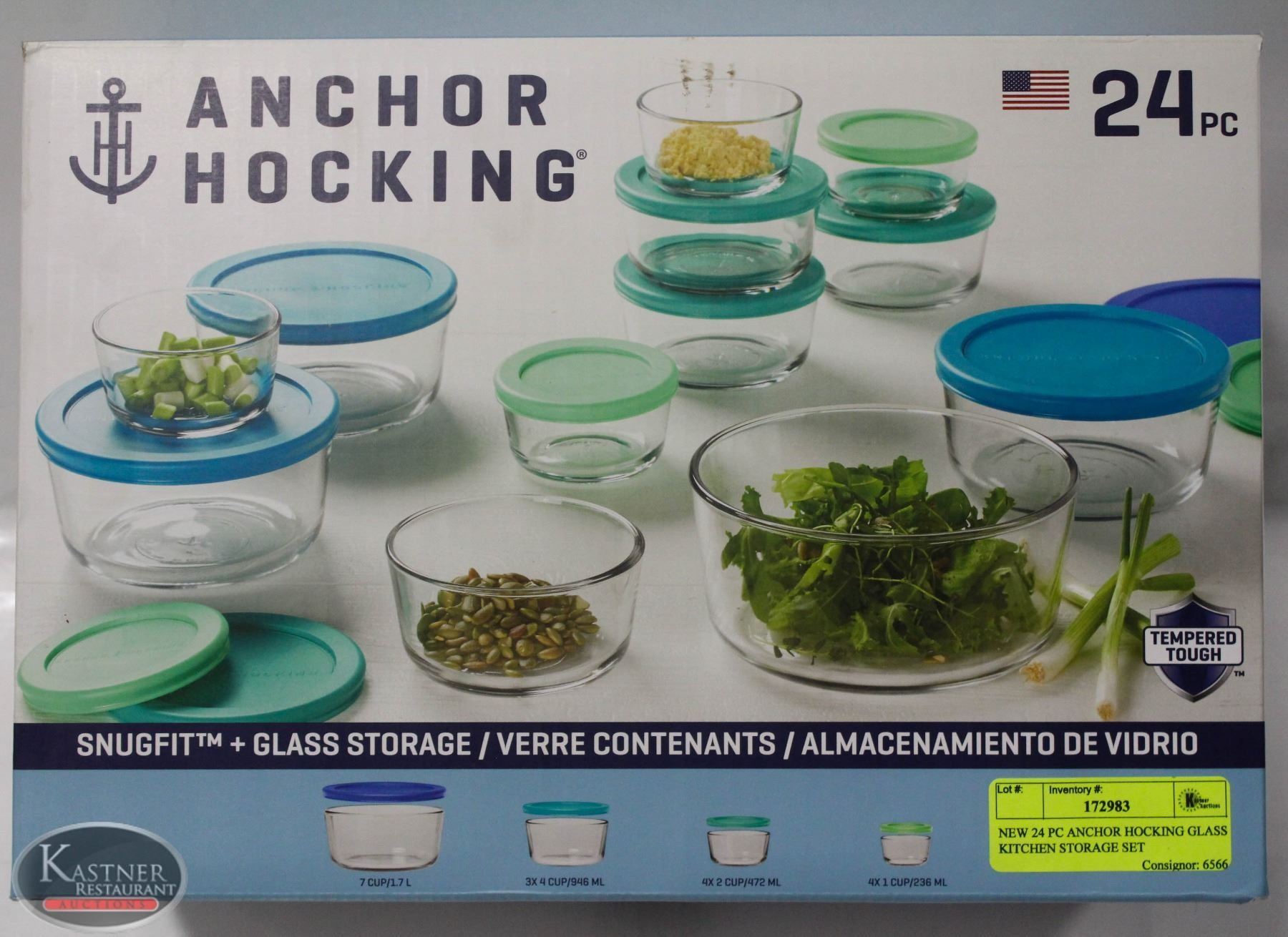 NEW 24 PC ANCHOR HOCKING GLASS KITCHEN STORAGE SET