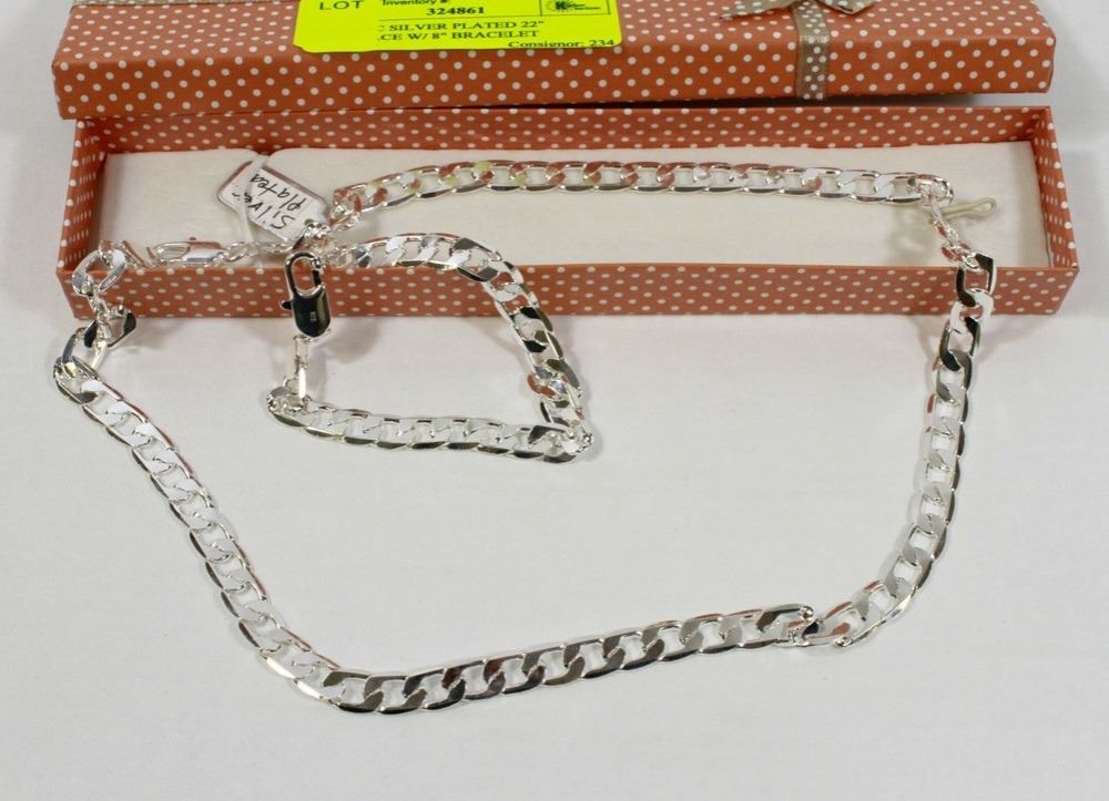 NEW 2PC SILVER PLATED 22" NECKLACE W/ 8" BRACELET