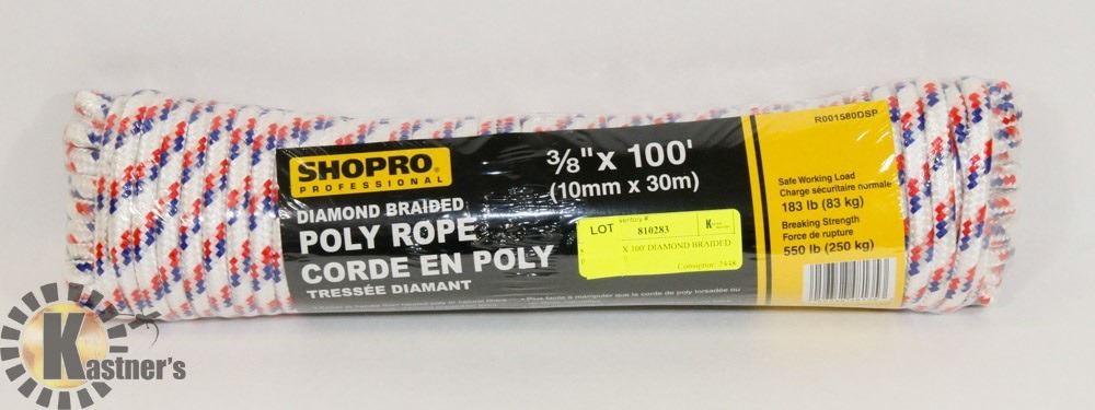 NEW! 3/8" X 100' DIAMOND BRAIDED POLY ROPE