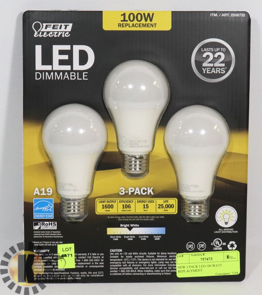 NEW 3 PACK LED 100 WATT REPLACEMENT