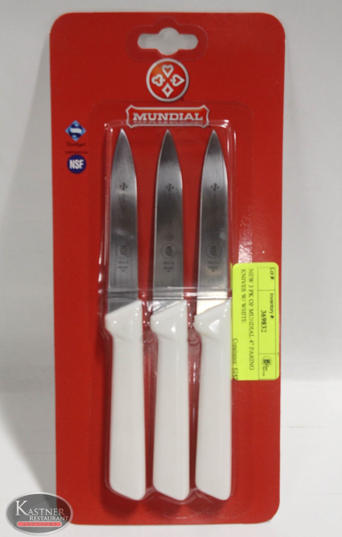 NEW 3 PK OF MUNDIAL 4" PARING KNIVES W/ WHITE