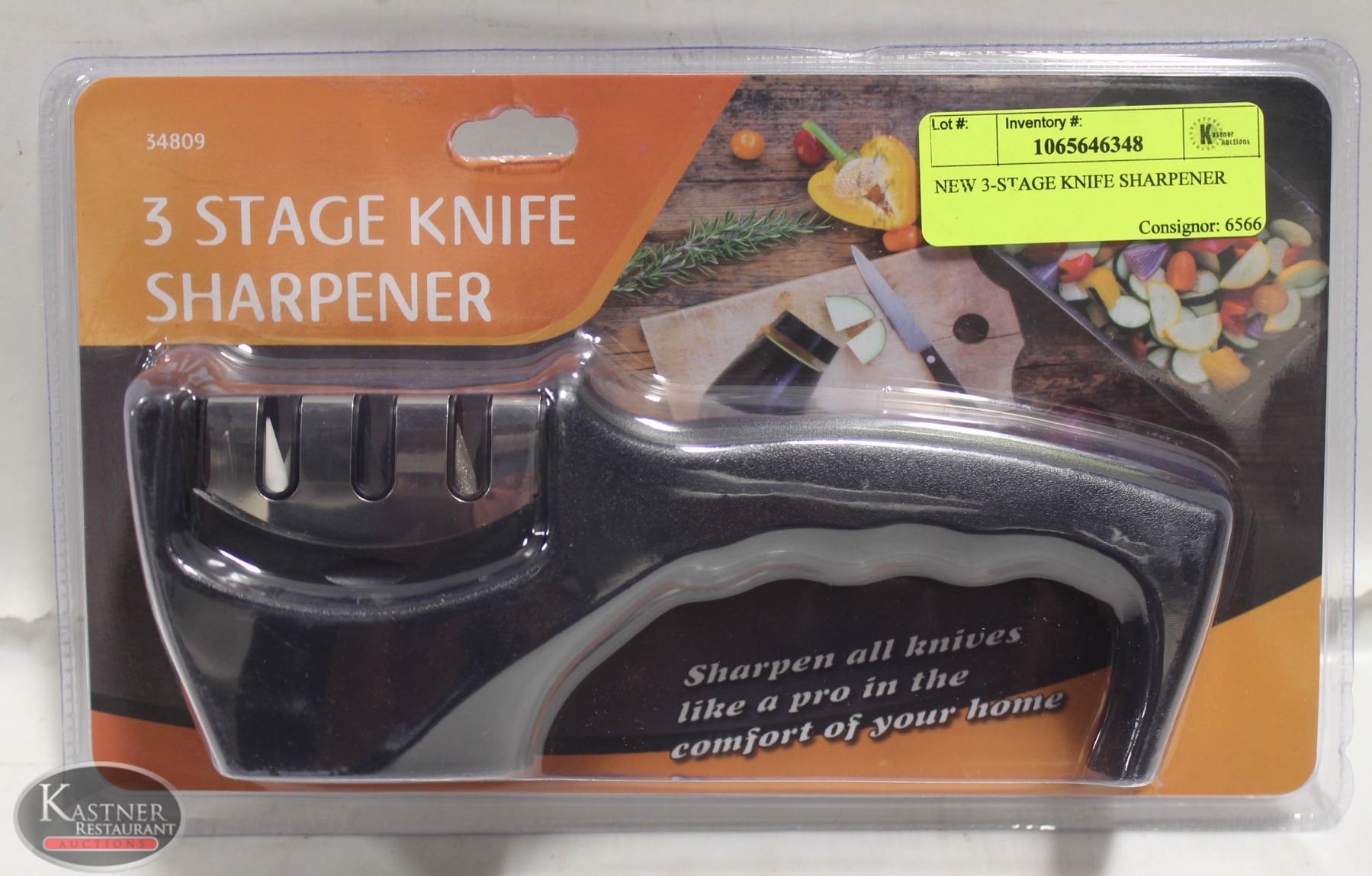 QUICKLY SHARPENS KNIVES IN 3-4 PULLS, IDEAL FOR STEEL & CERAMIC KNIVES, ERGONOMIC HANDLE, NON-SLIP BASE. **THIS ITEM IS LOCATED AT OUR MAIN EDMONTON LOCATION - 11205 149ST NW, EDMONTON**