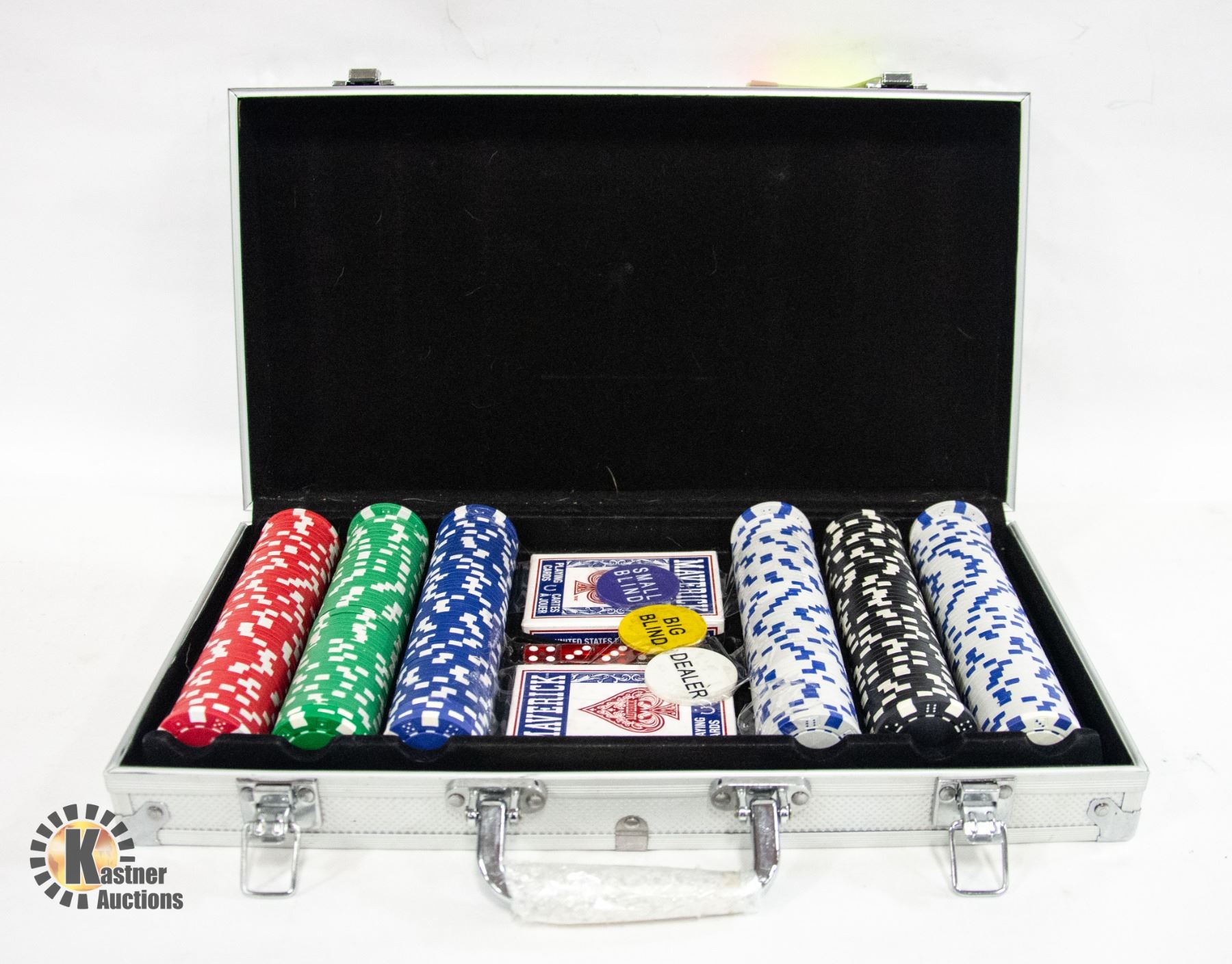 GR, 2 DECKS, 5 DICE, DEALER BUTTONS, CASE **ALL ITEMS MUST BE REMOVED BY 5PM SATURDAY, NOVEMBER 4TH 2023. ALL REMAINING ITEMS WILL BE SUBJECT TO A $6.00 PER DAY STORAGE CHARGE. ANY ITEMS REMAINING AFTER MONDAY, NOVEMBER 18TH, 2023 WILL BE CONSIDERED FORFEITED. NO REFUNDS WILL BE ISSUED FOR FORFEITED ITEMS. TO SCHEDULE A PICK UP APPOINTMENT CLICK HERE