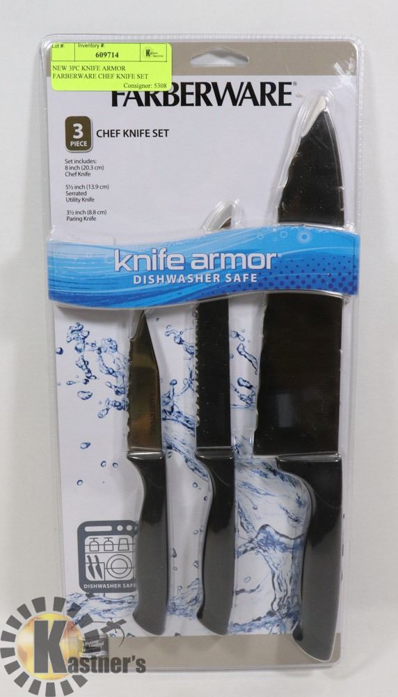 NEW 3PC KNIFE ARMOR FARBERWARE CHEF KNIFE SET