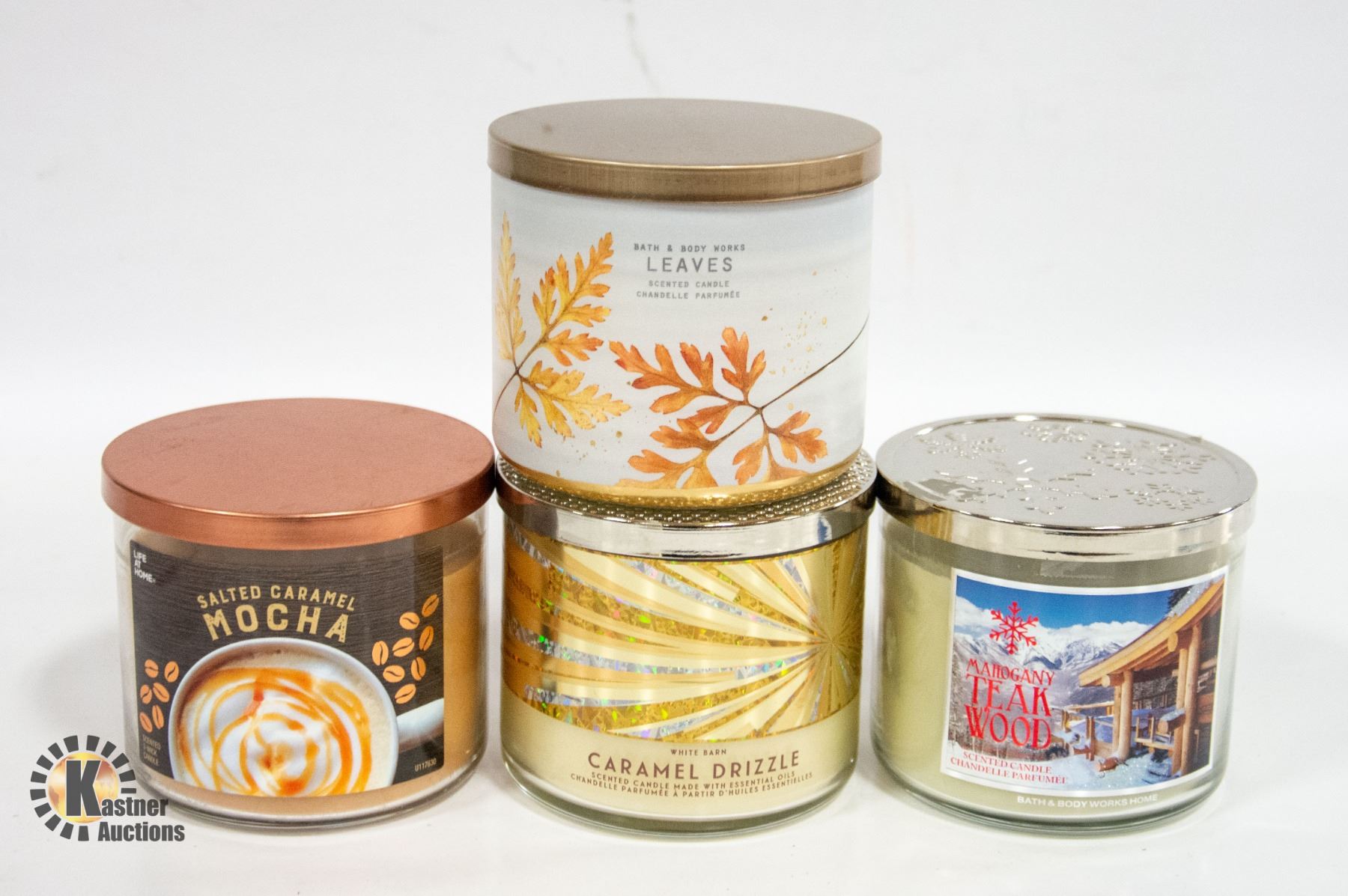 SALTED CARMEL MOCHA SOYA USA, WHITE BARN CARAMEL DRIZZLE & 2 BODY WORKS LEAVES MAHOGANY TEAK WOOD ALL 3 WICK **ALL ITEMS MUST BE REMOVED BY 5PM SATURDAY, DECEMBER 9TH 2023. ALL REMAINING ITEMS WILL BE SUBJECT TO A $6.00 PER DAY STORAGE CHARGE. ANY ITEMS REMAINING AFTER THURSDAY, DECEMBER 21ST 2023 WILL BE CONSIDERED FORFEITED. NO REFUNDS WILL BE ISSUED FOR FORFEITED ITEMS. TO SCHEDULE A PICK UP APPOINTMENT CLICK HERE