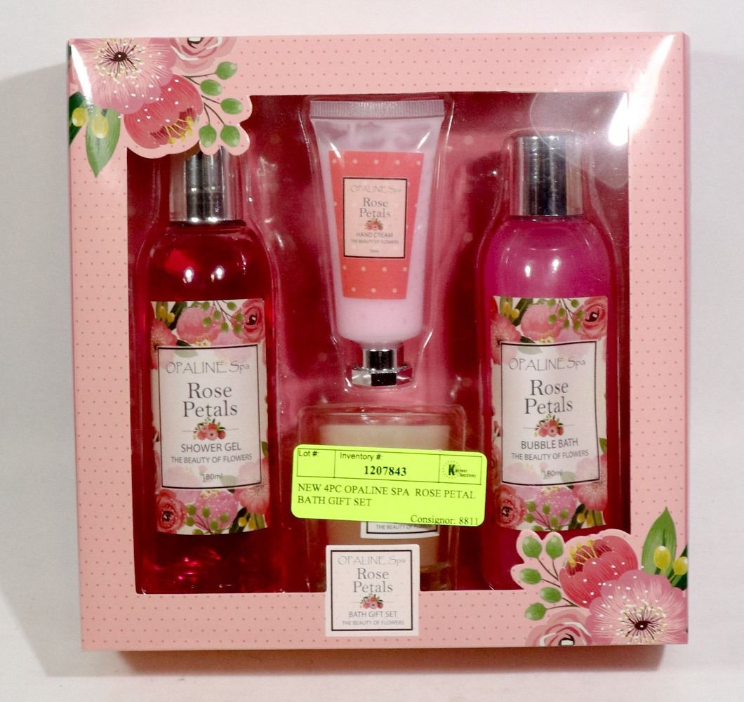 NEW 4PC OPALINE SPA ROSE PETAL BATH GIFT SET