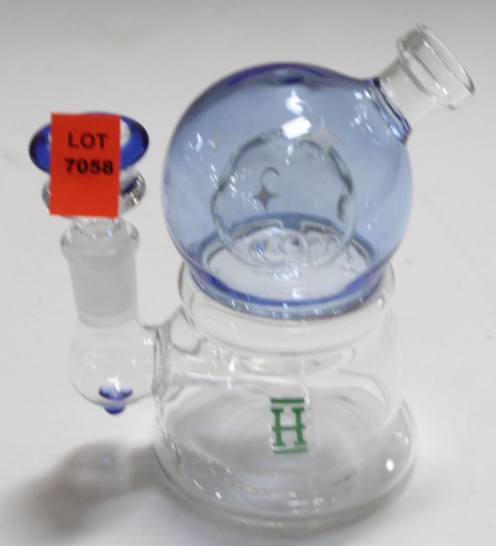 NEW 5.5" "H" BLUE/ CLEAR GLASS ORB BONG