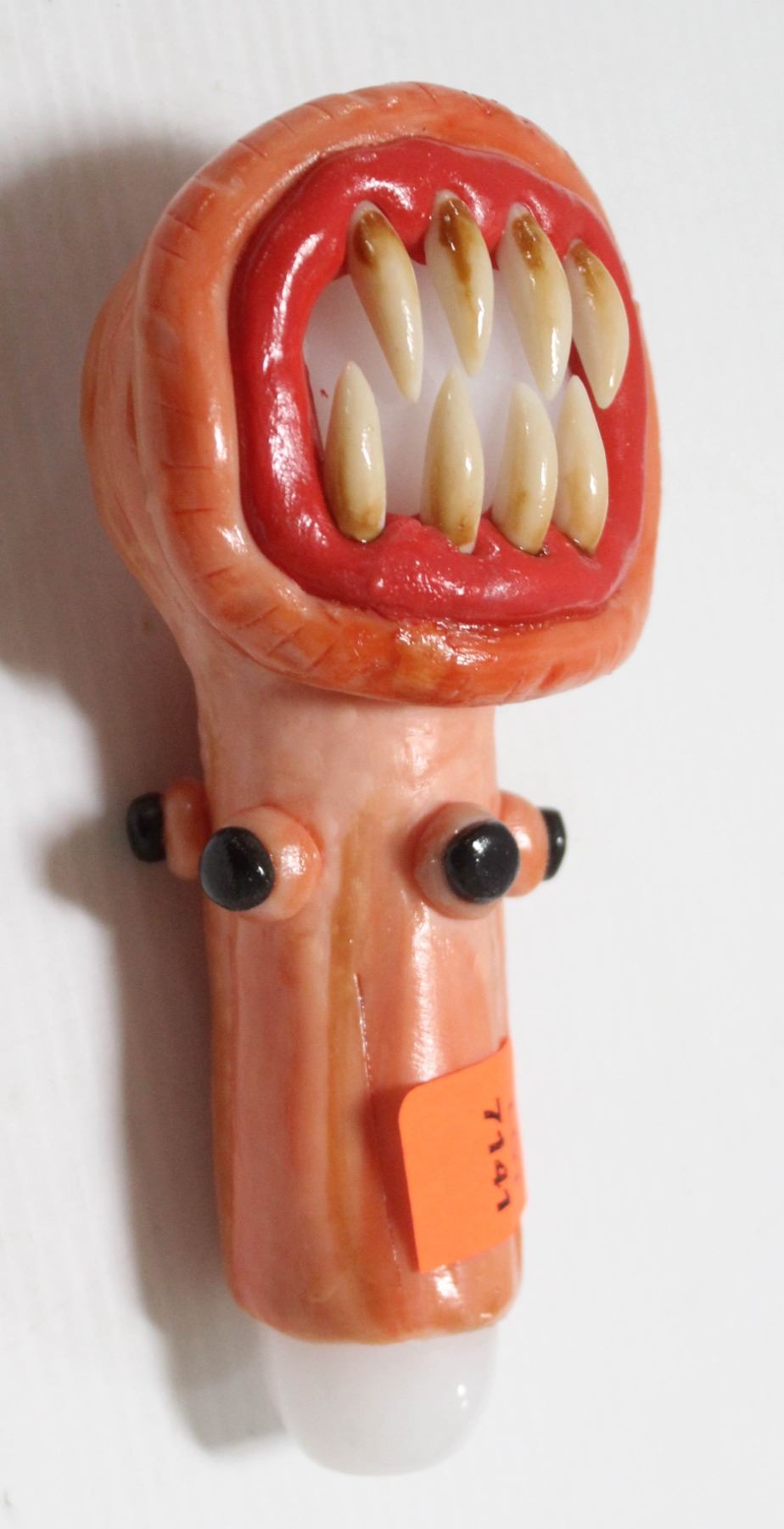 NEW 5" MONSTER FACE GLASS PIPE; RED W/ TEETH