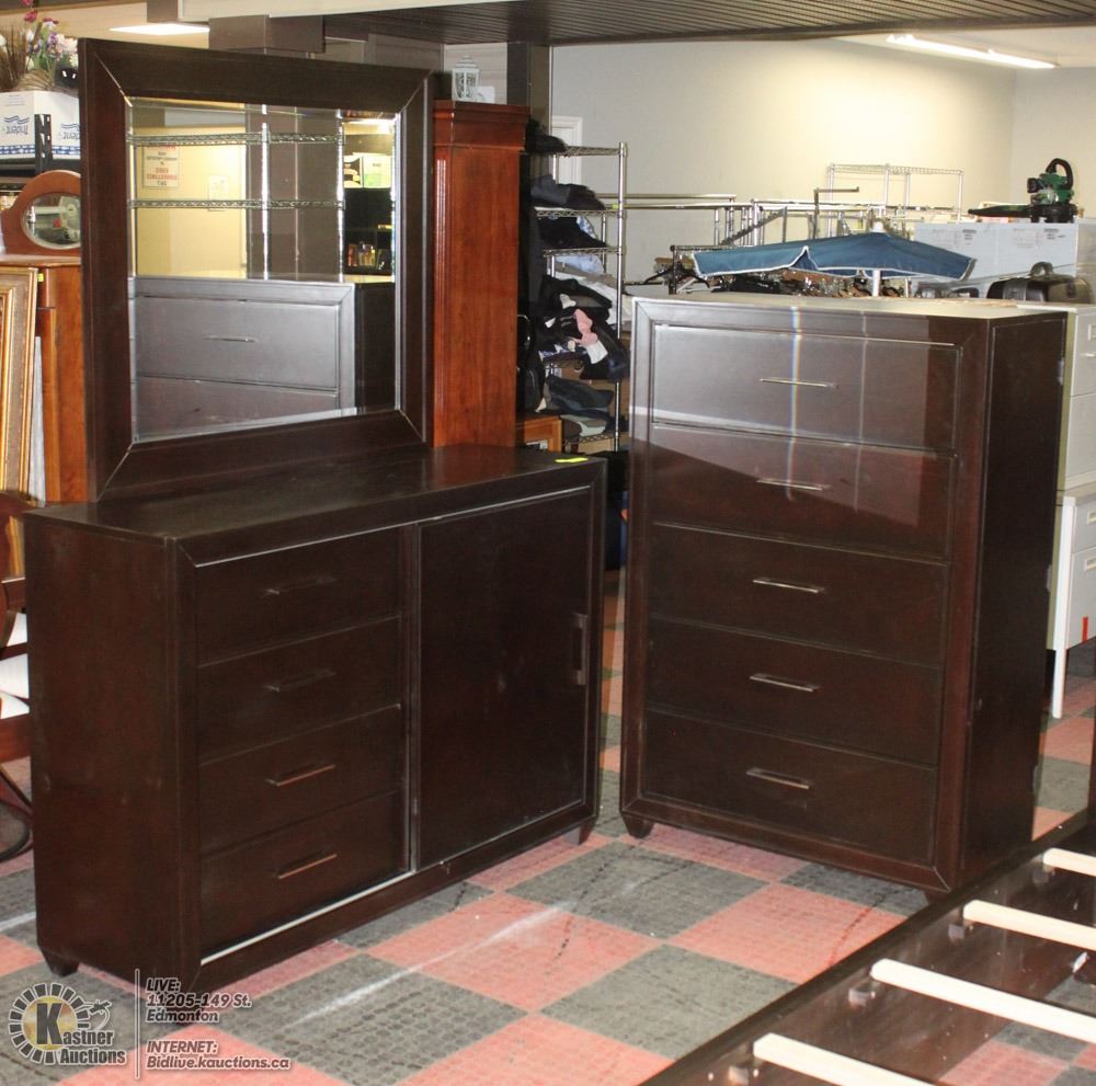 INCL. BED FRAME, NIGHT STAND, CHEST OF DRAWERS, DRESSER AND MIRROR