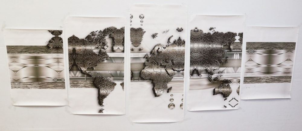 WORLD MAP, GREY TONES WALL HANGING, UNFRAMED.***PLEASE BE ADVISED THE SECOND PICTURE IS OF AN UNFRAMED SET AND WHAT YOU WILL BE RECEIVING WHEN YOU PICK UP. HOME COLLECTIBLES