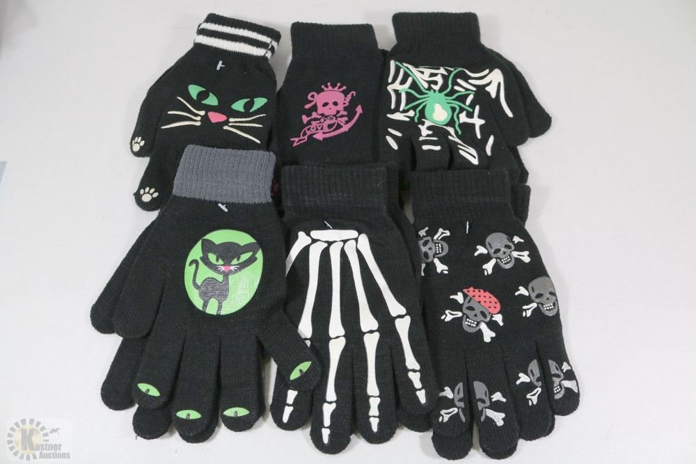 NEW 6 PACK GLOW IN THE DARK HALLOWEEN GLOVES