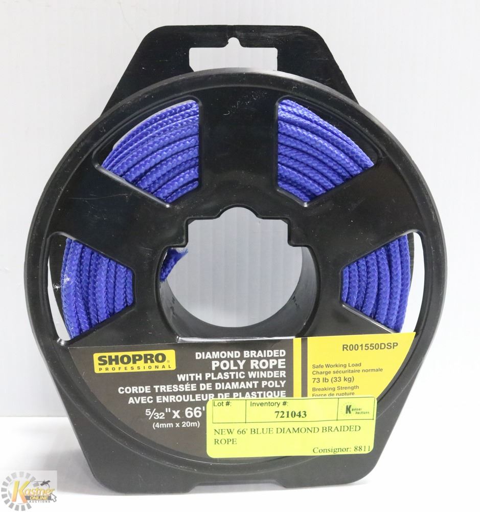 NEW 66' BLUE DIAMOND BRAIDED ROPE