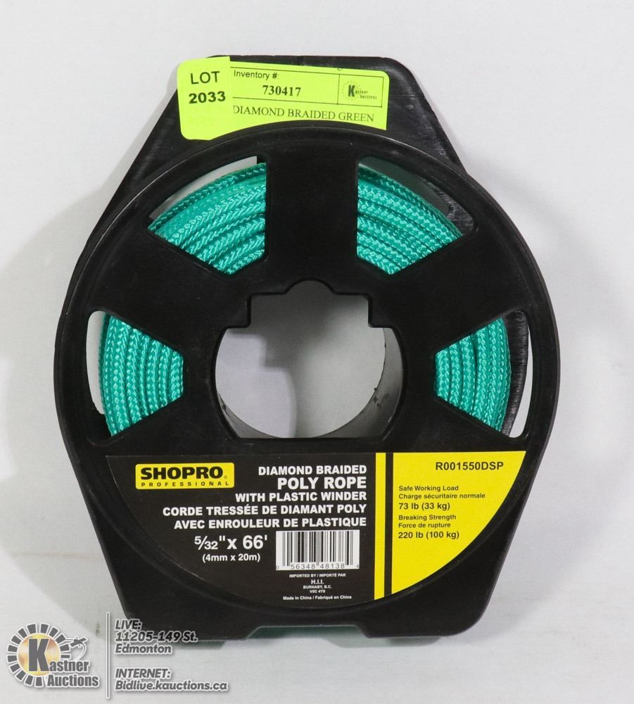 NEW 66' DIAMOND BRAIDED GREEN ROPE