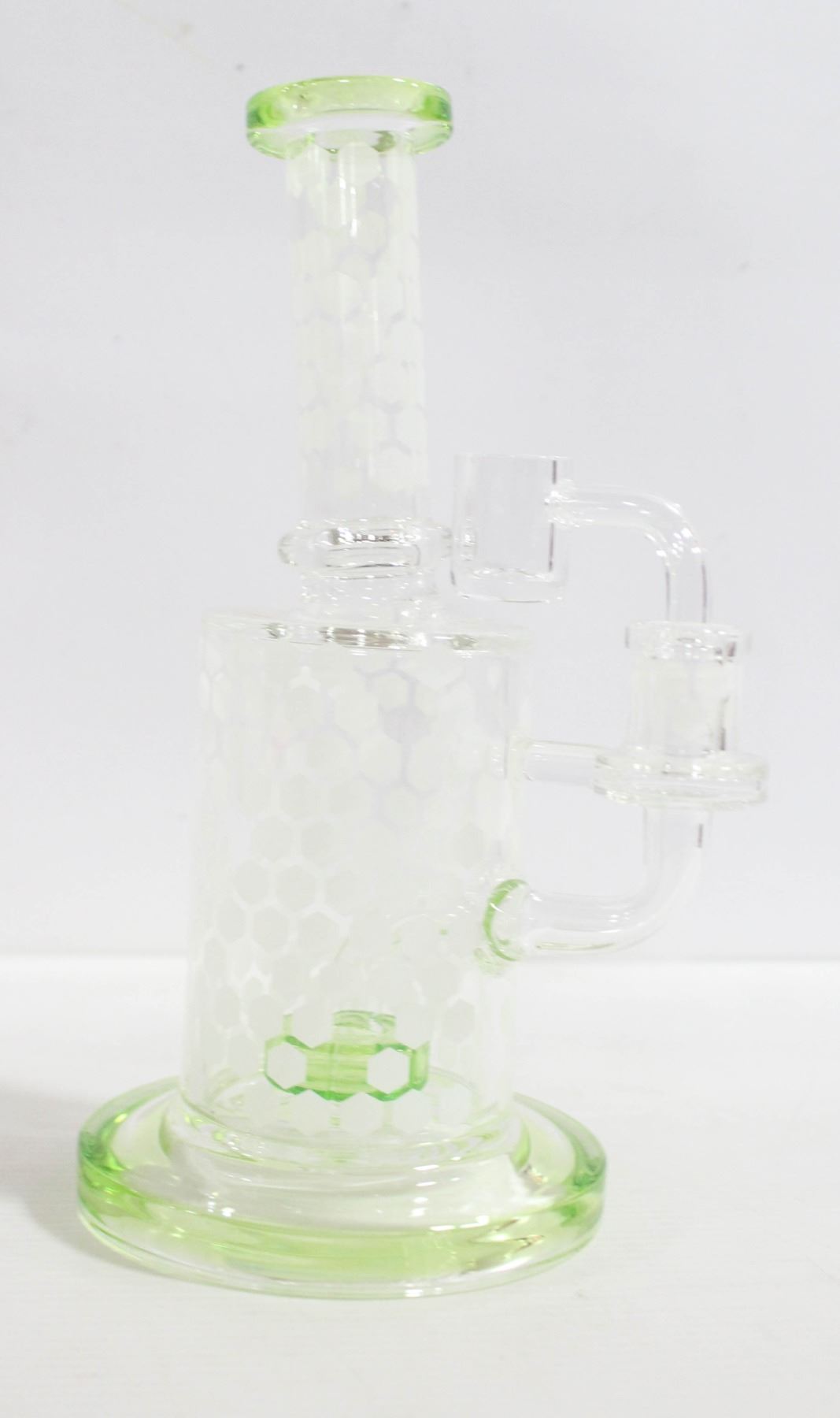 NEW 8" WHITE/ GREEN HONEYCOMB GLASS PERC BONG