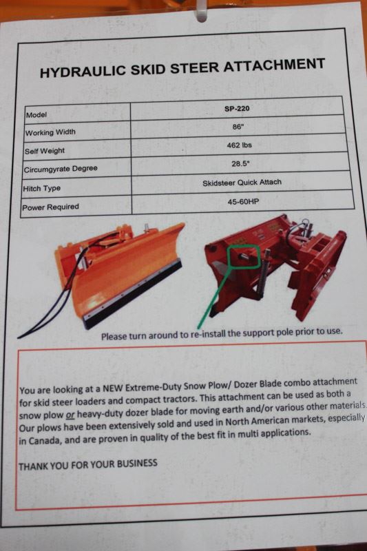 NEW 86" HYDRAULIC SKID STEER LOADER/DOZER/SNOWPLOW