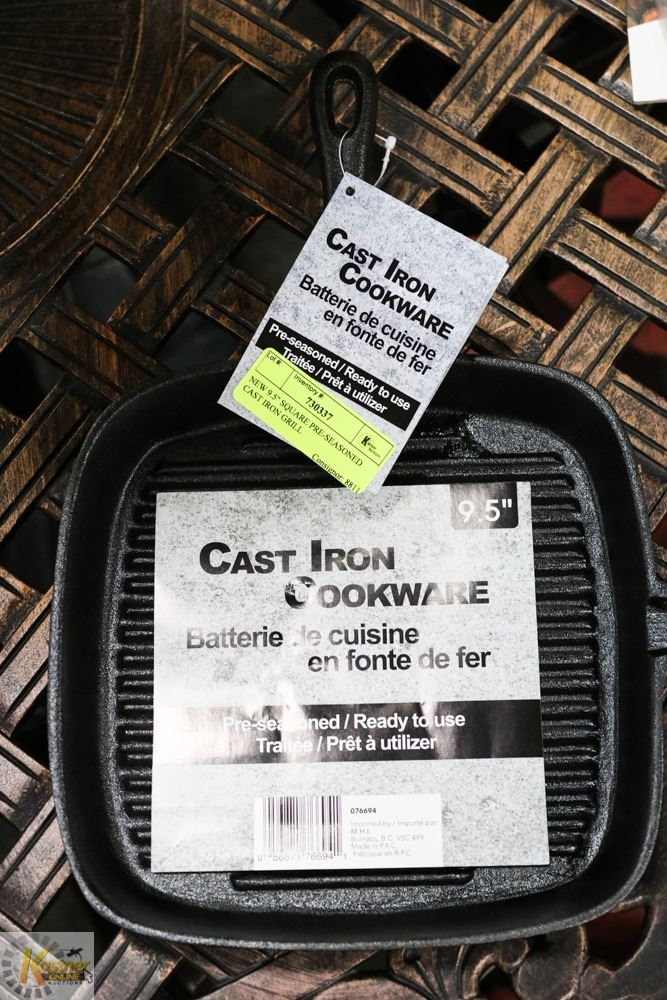 NEW 9.5" SQUARE PRE-SEASONED CAST IRON GRILL