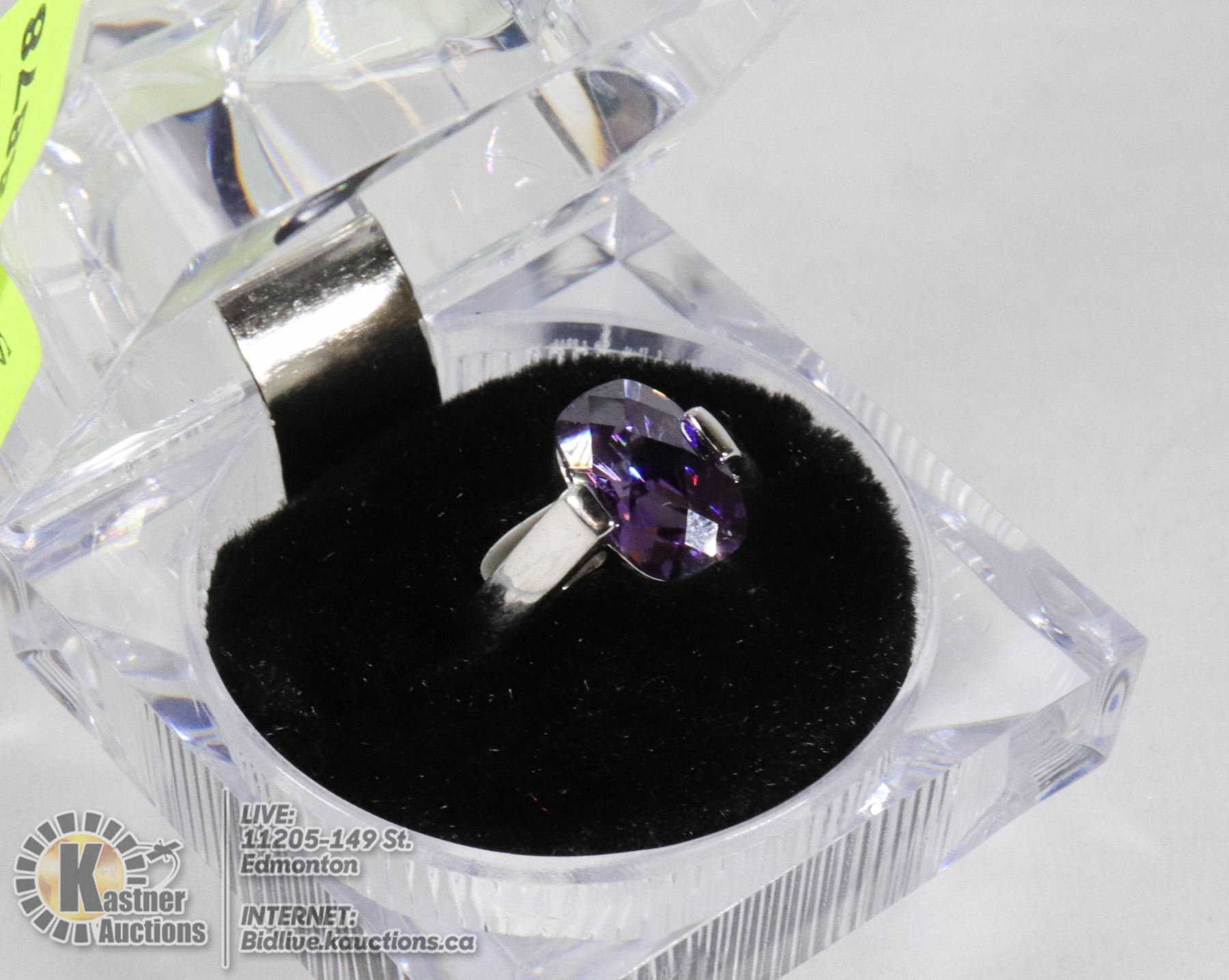 NEW 925 STERLING LADIES RING SIZE 7, PURPLE ZIRCON
