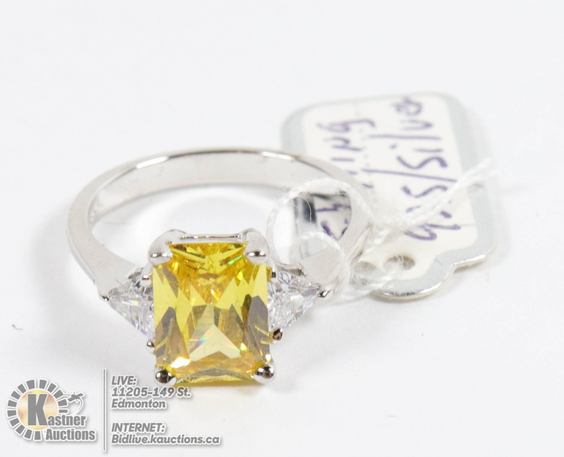 NEW 925 STERLING SILVER LADIES RING SIZE 7,YELLOW ZIRCONIA STONE, AND ZIRCONIA DIAMONDS ON SIDES, IN