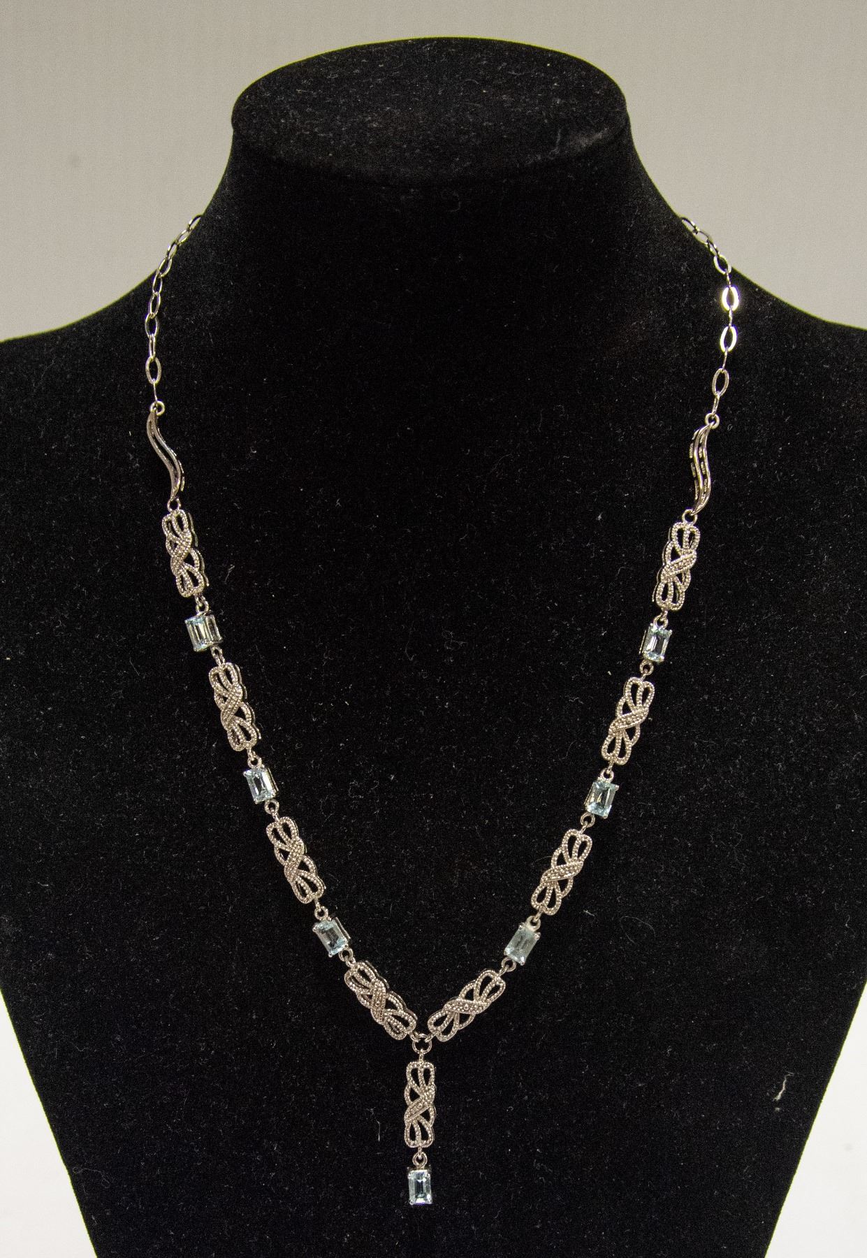 NEW .925 STERLING SILVER 16" NECKLACE, REAL 7 TOPAZ STONES, RETAIL $380.00 IN PINK & GREY VELVET CASE