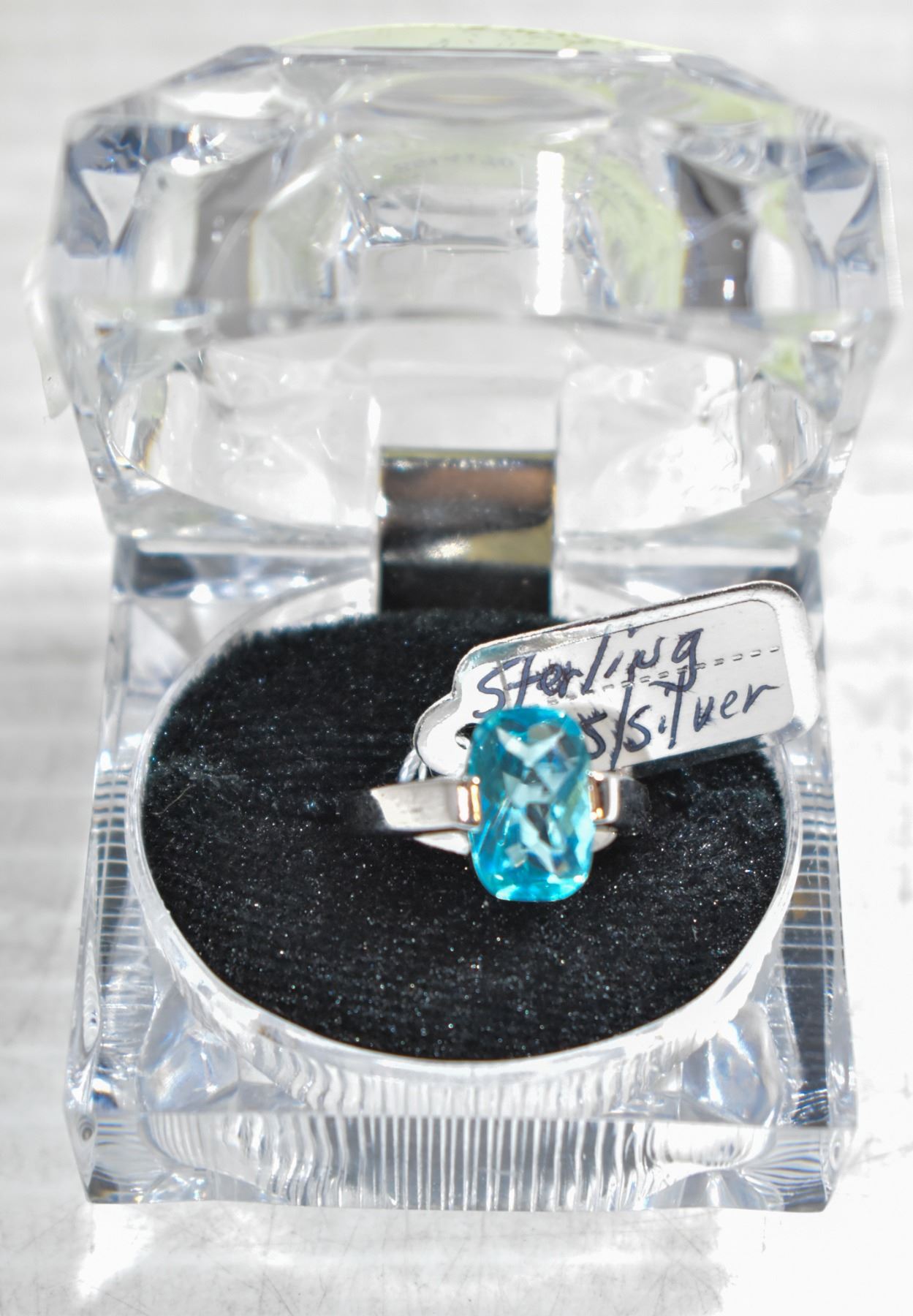 NEW 925 STERLING SILVER CUBIC BLUE RING SIZE 7, SIZE 7, CLEAR CASE- NONE