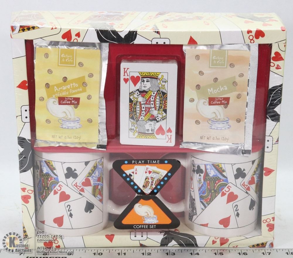 MUGS MOCHA AND PLAYING CARDS HOUSEHOLD