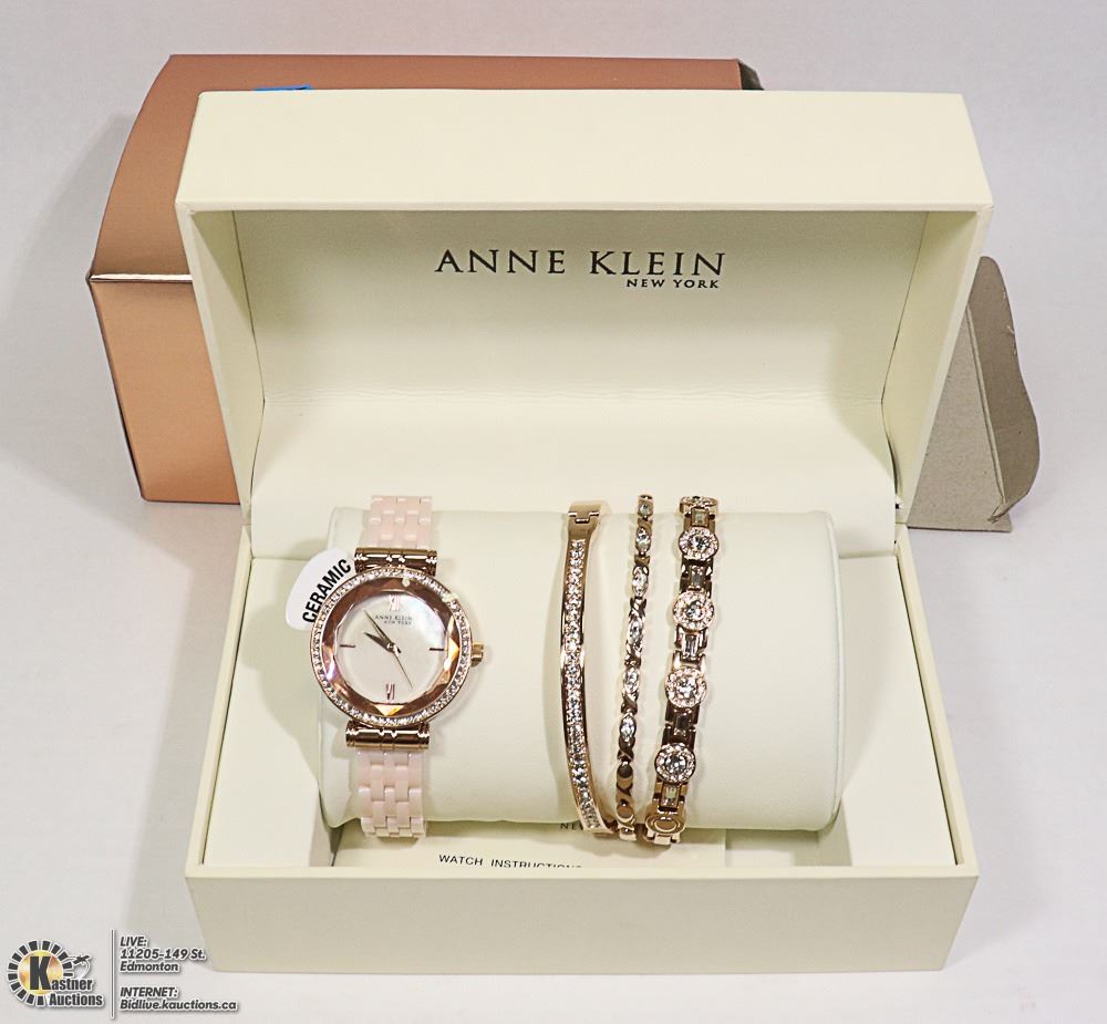 CRYSTALS DECORATED WATCH AND 3 BANGLES. AUTHENTIC. JEWELRY