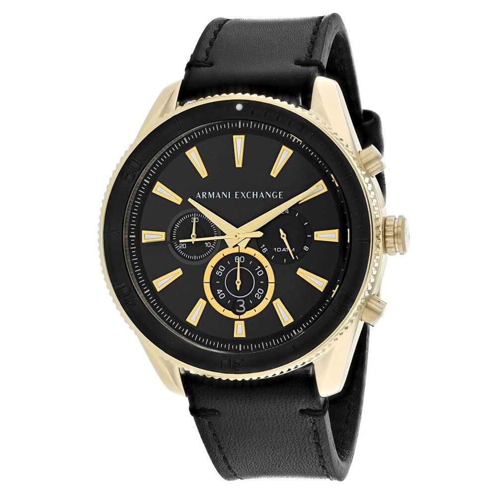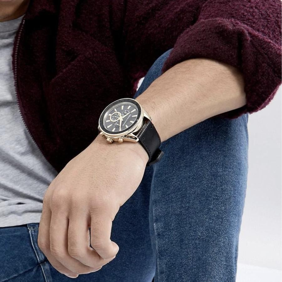 TRIPLE CHRONO GOLD TONE CASE ALLIGATOR LEATHER STRAP WATCH. JEWELLERY.