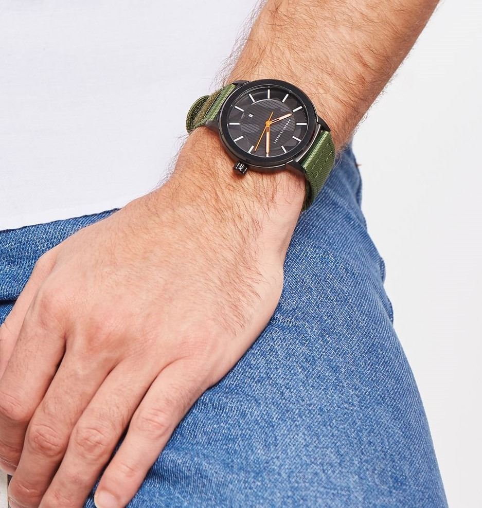 GREEN NYLON FABRIC STRAP WATCH. JEWELLERY.