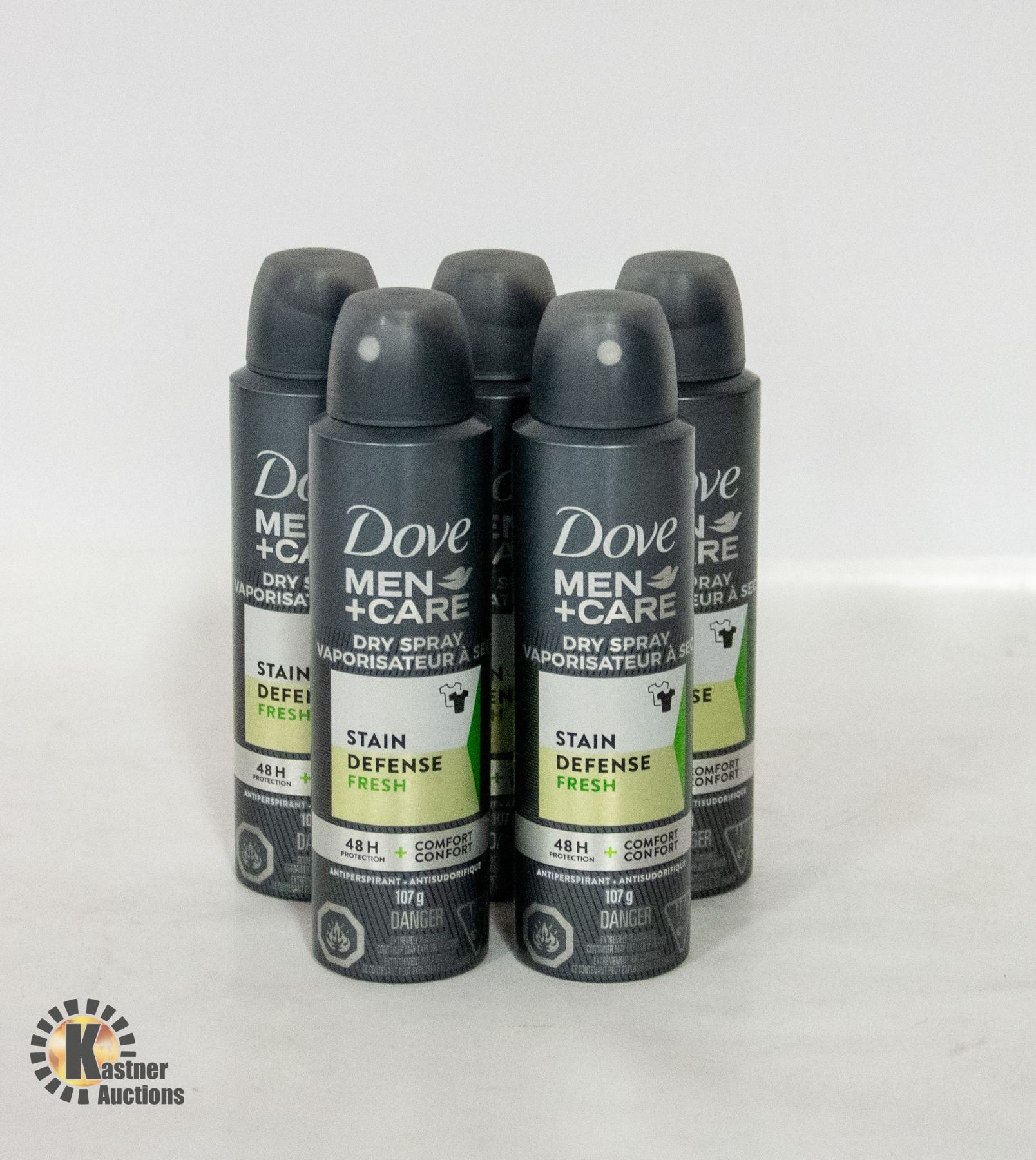 NEW BAG OF 5 DOVE MEN+CARE DRY SPRAY 107G BOTTLES