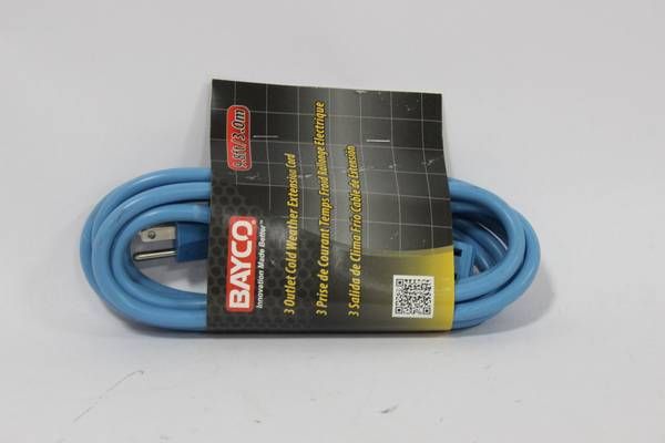 NEW BAYCO 3 OUTLET COLD WEATHER EXTENSION CORD