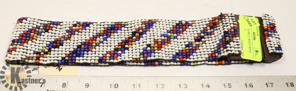 NEW BEADED BELT, WHITE WITH MULTICOLOR