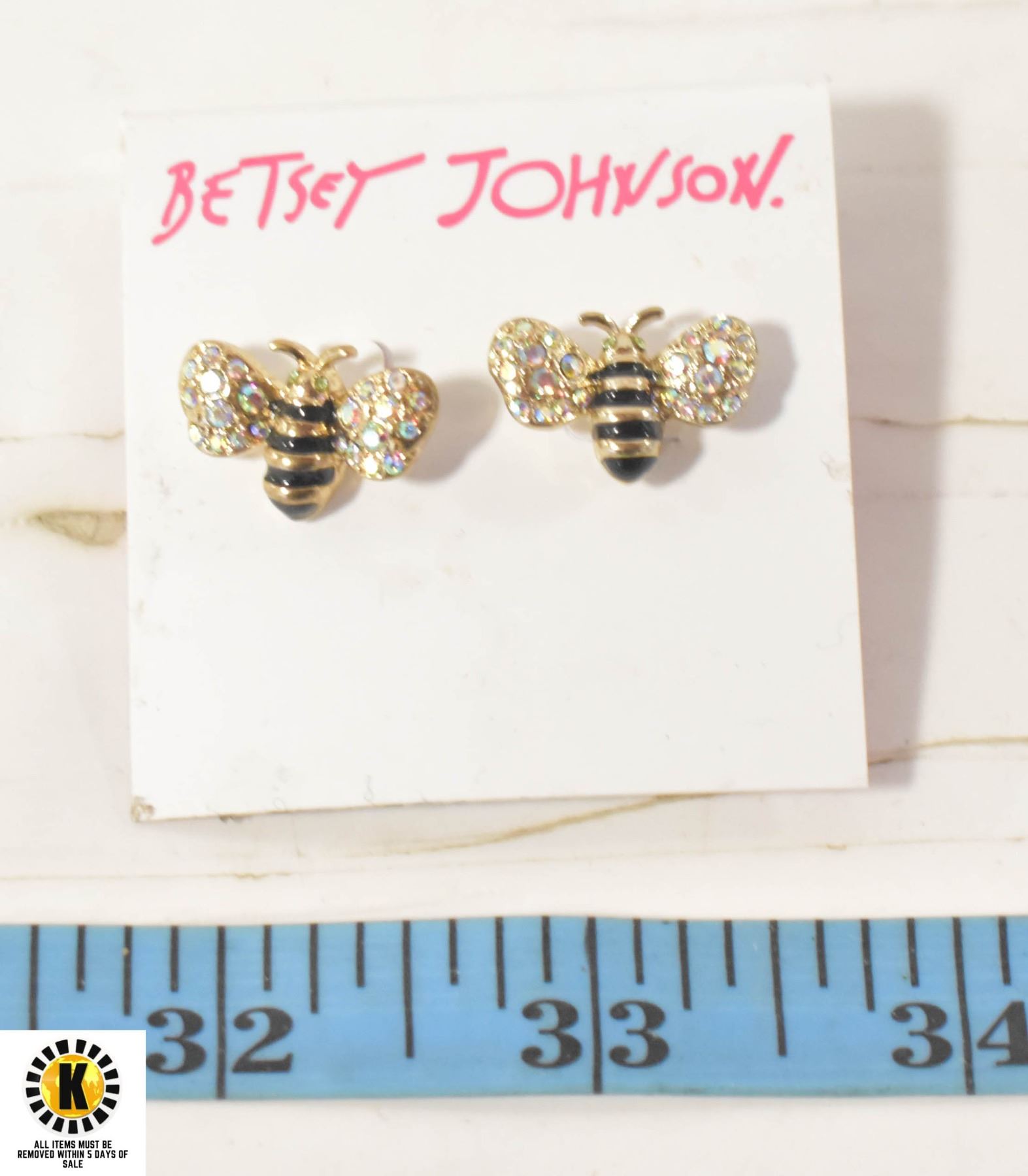 NEW BETSEY JOHNSON JEWELED BUMBLE BEE EARRINGS