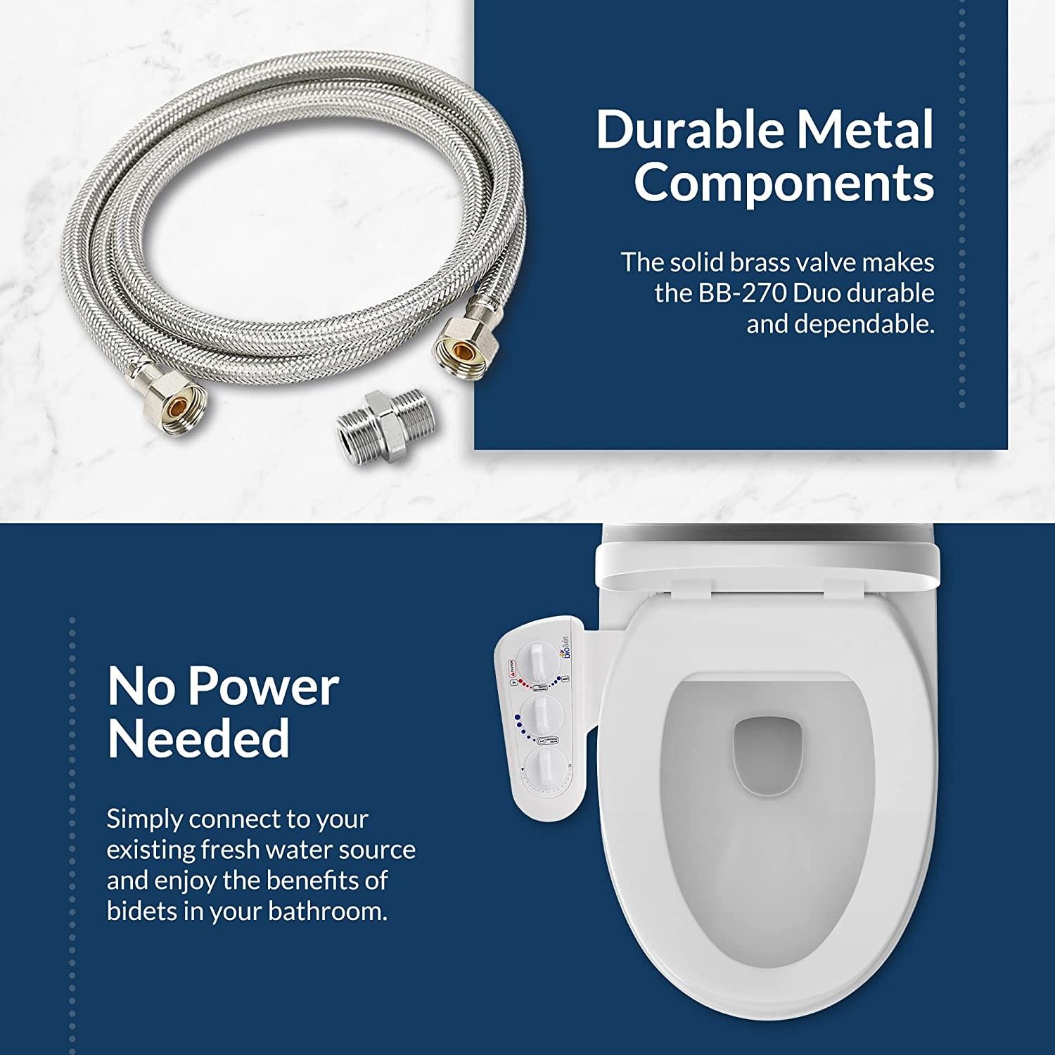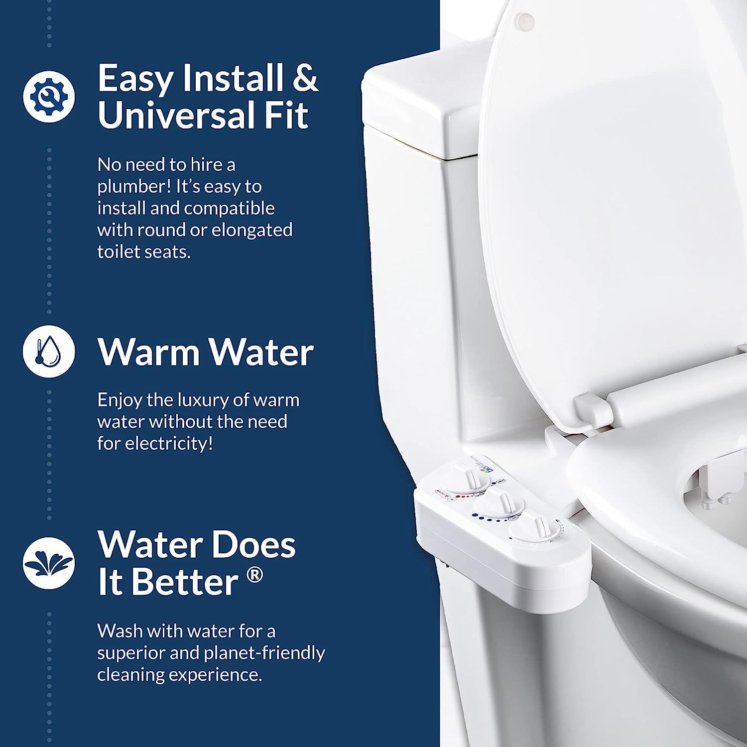 WATER SPRAY NON-ELECTRIC MECHANICAL BIDET TOILET SEAT ATTACHMENT, METAL HOSE, AMZ SES
