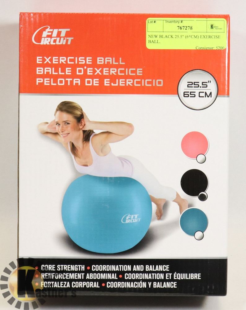 NEW BLACK 25.5" (65CM) EXERCISE BALL.