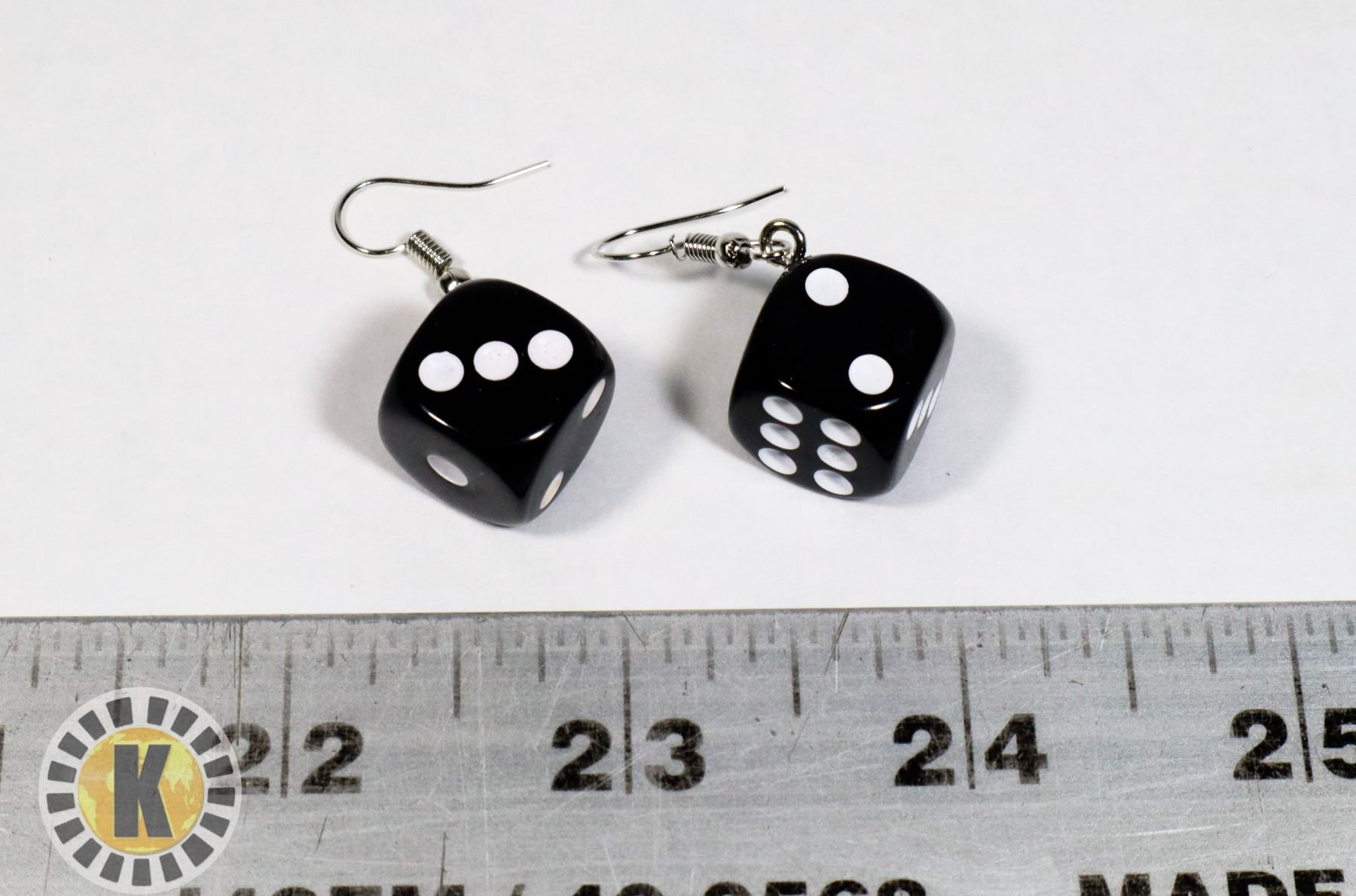 NEW BLACK AND WHITE 6 SIDED DICE DROP EARRINGS