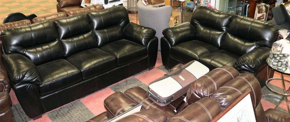 NEW BLACK LEATHERETTE 86" SOFA WITH 65" LOVE SEAT