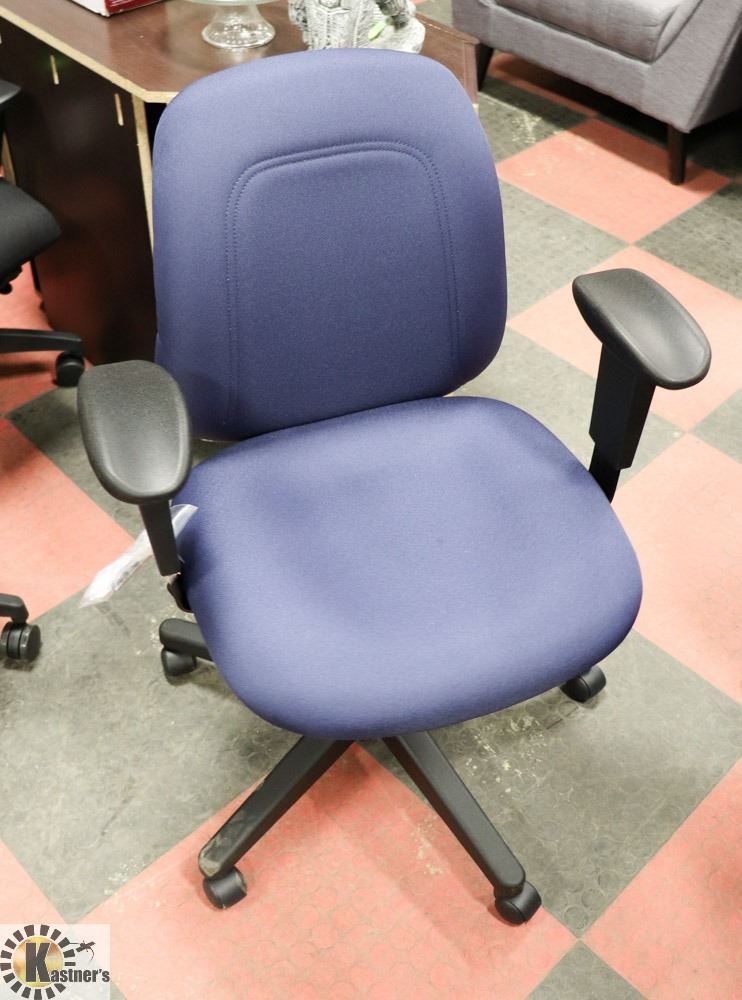 NEW BLUE AND BLACK HYDRAULIC LIFT OFFICE CHAIR