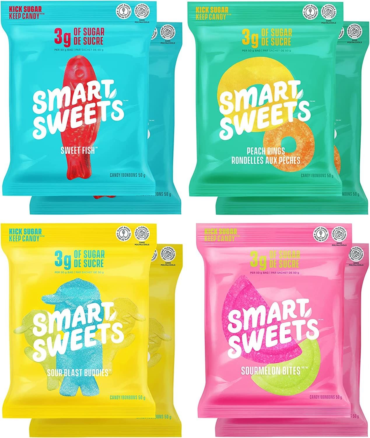 SWEET FISH, SOURMELON BITES, PEACH RINGS, SOUR BLAST BUDDIES, AMZ SES