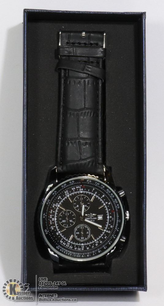 STAINLESS STEEL BACK WATER RESISTANT MEN'S WATCH BLACK FACE