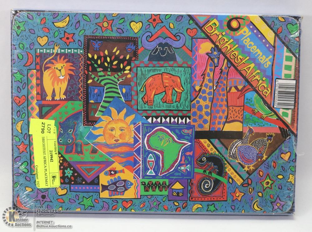 BY ART PUBLISHERS, STE OF 6 PLACEMATS WITH CORK BACKINGS SO THEY WONT SLIDE AROUND AND TO PROTECT TABLE, EASY TO CLEAN
