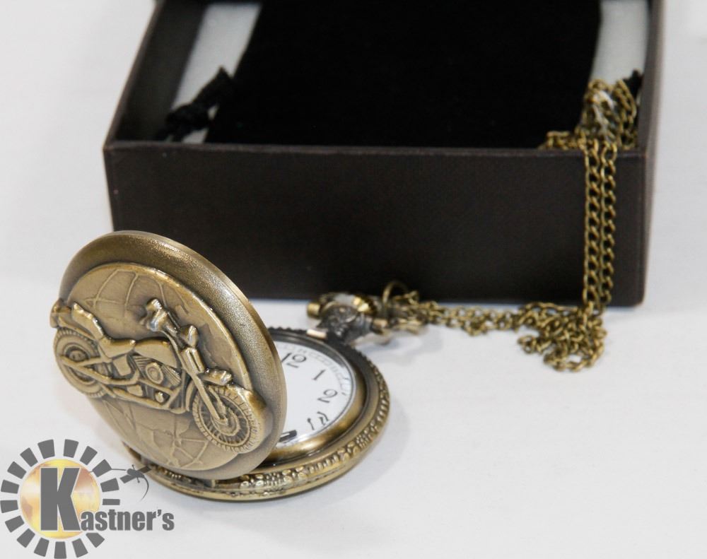 NEW BRONZE POCKET WATCH MOTORCYCLE FACE BRONZE CHA