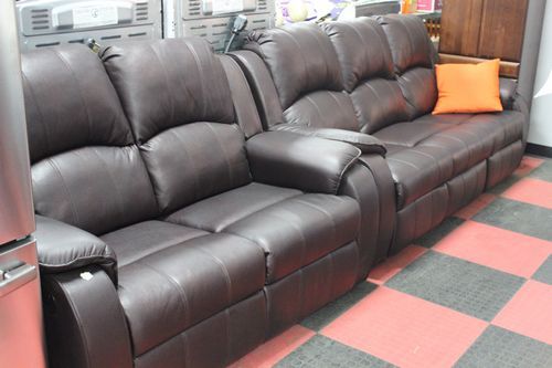 NEW BROWN LEATHER LOOK  RECLINING SOFA AND LOVE