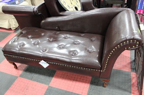 NEW BROWN LEATHER STORAGE CHAISE LOUNGE CHAIR