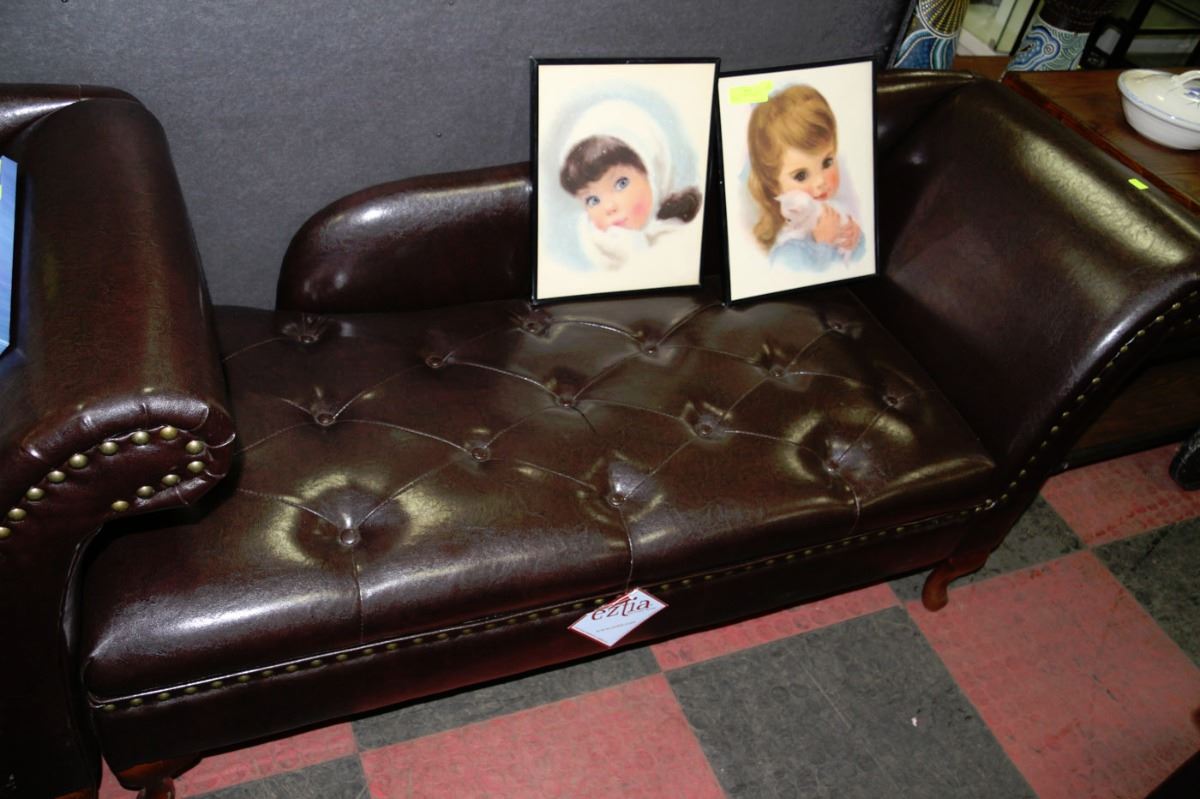 NEW BROWN LEATHERETTE STORAGE CHAISE LOUNGE CHAIR