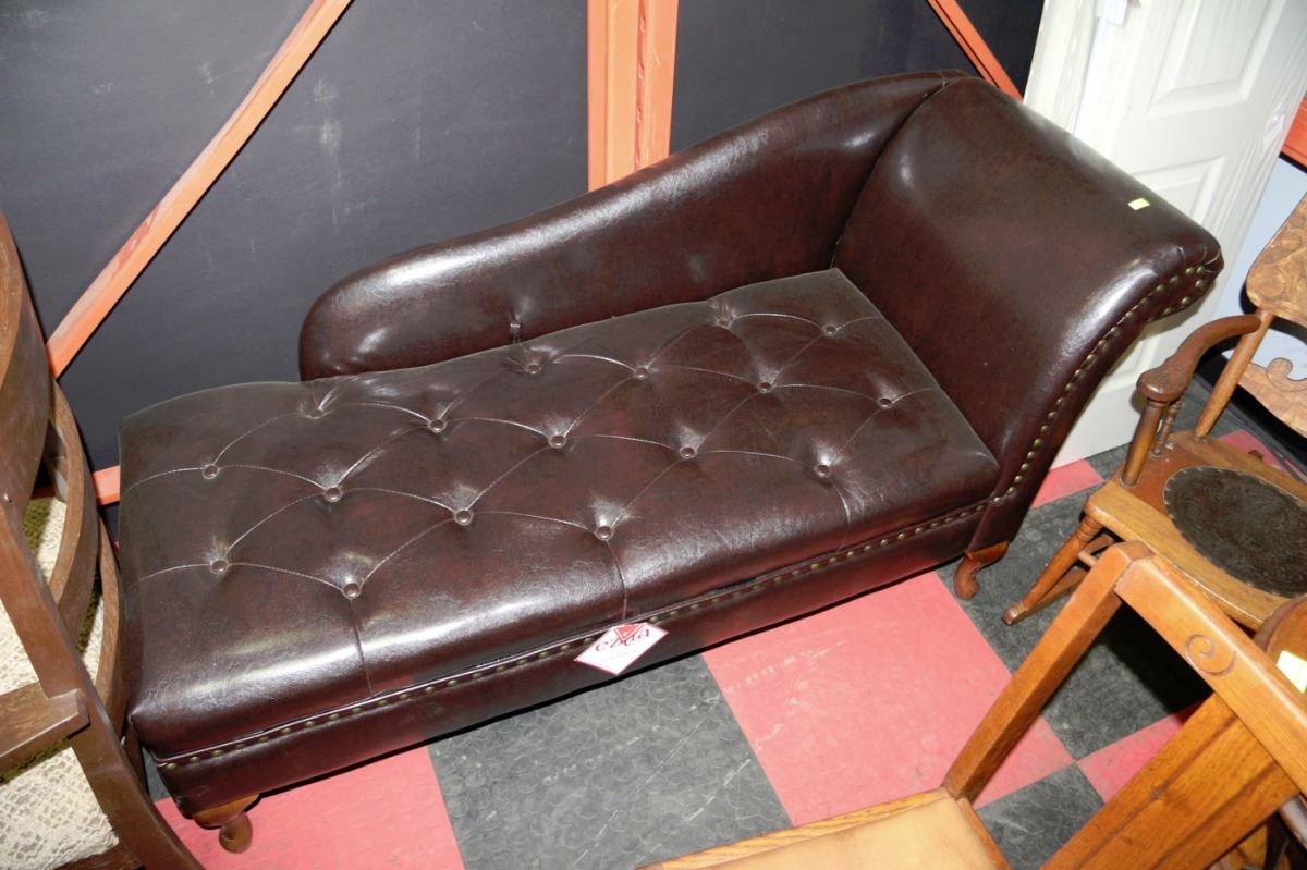 NEW BROWN LEATHERETTE STORAGE CHAISE LOUNGE CHAIR