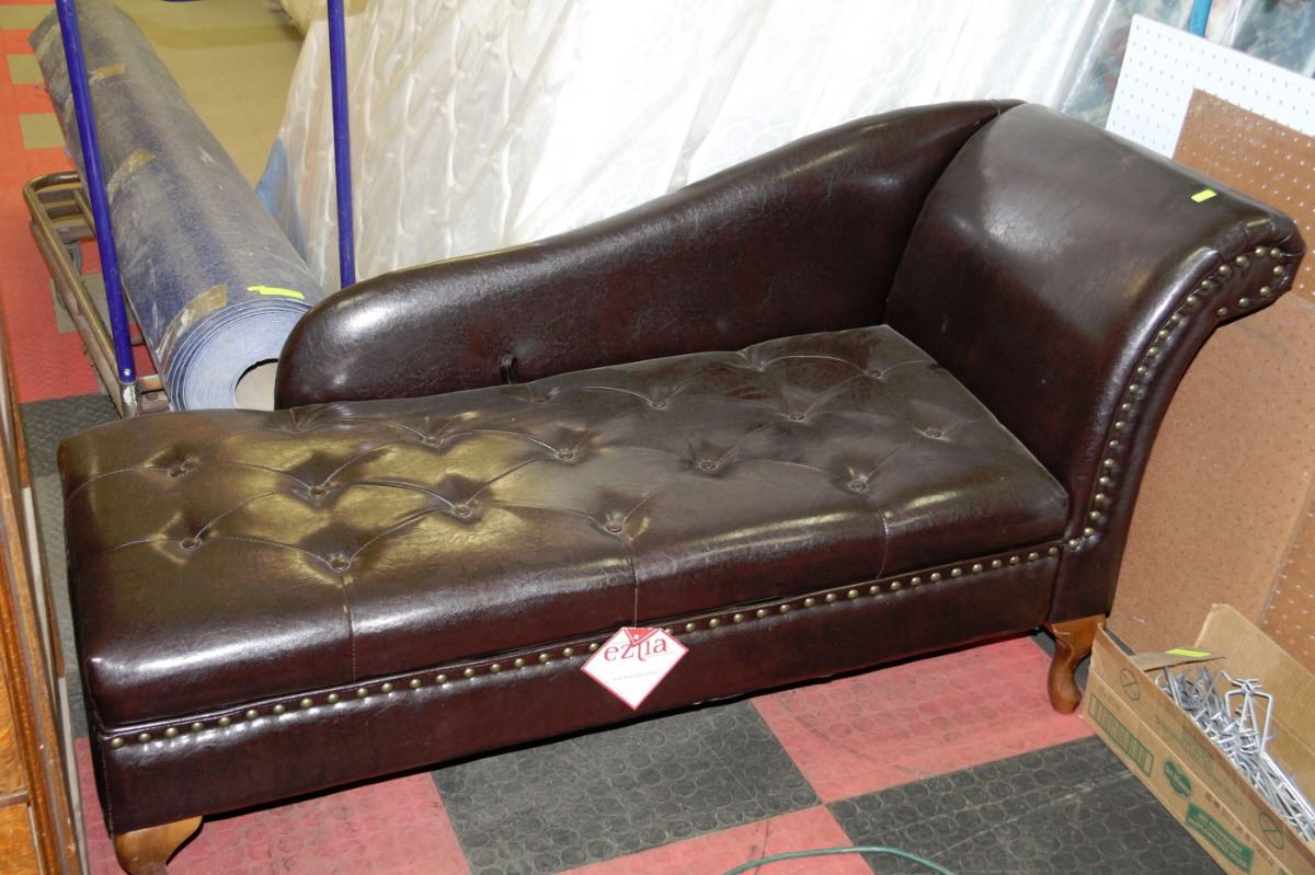NEW BROWN LEATHERETTE STORAGE CHAISE LOUNGE CHAIR